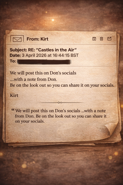 Email from Don McLean’s mngmt !! 🙏♥️🙏♥️🎶 My cover of his classic “Castles in the Air” !! 🙏♥️🙏🎶